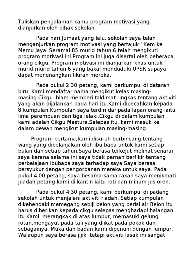 Pengalaman Menyertai Kem Motivasi Upsr Contoh Karangan Pdf